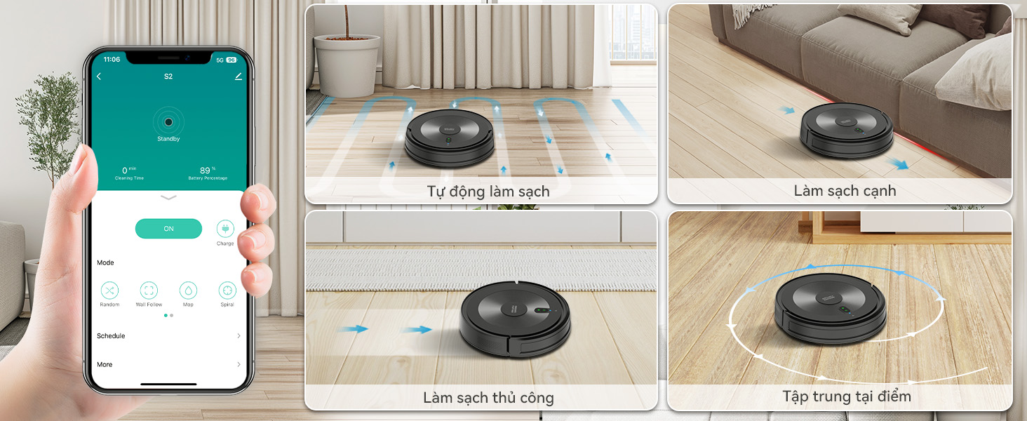 Robot hút bụi 2 trong : Hút bụi và lau nhà hiệu quả.
