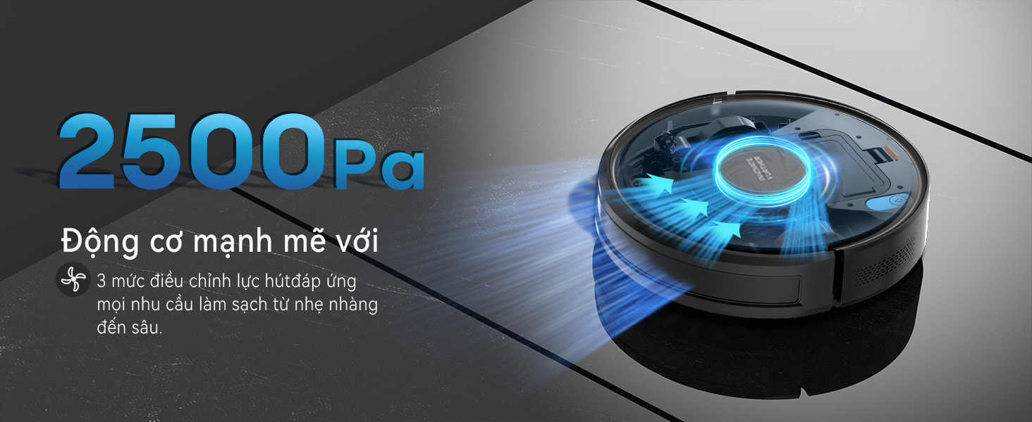 Lực hút mạnh mẽ: 2500Pa, làm sạch sâu mọi bụi bẩn