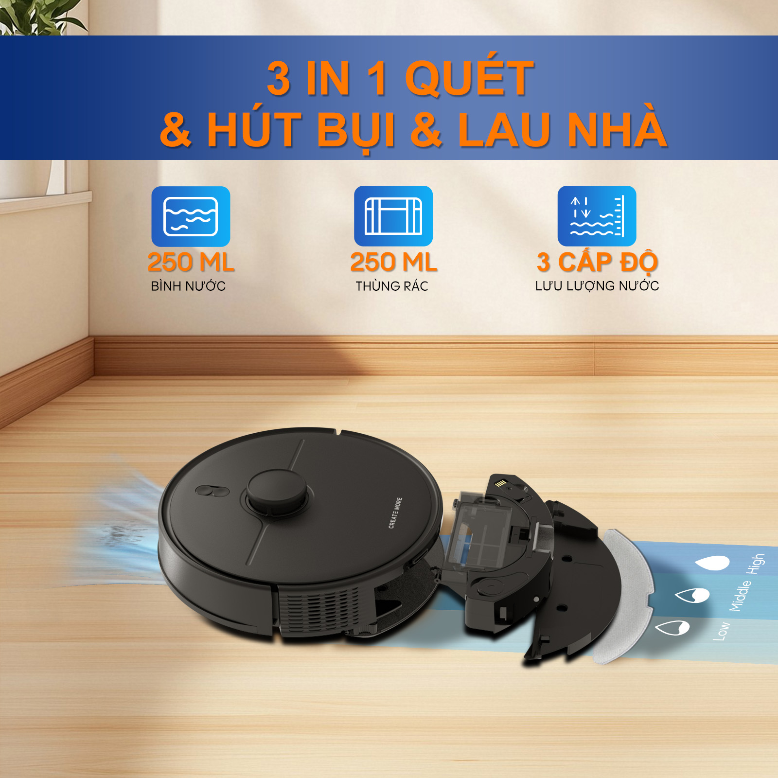 4 trong 1: Quét – Lăn – Hút – Lau sàn: Phù hợp với mọi loại sàn, mang lại giải pháp làm sạch toàn diện.