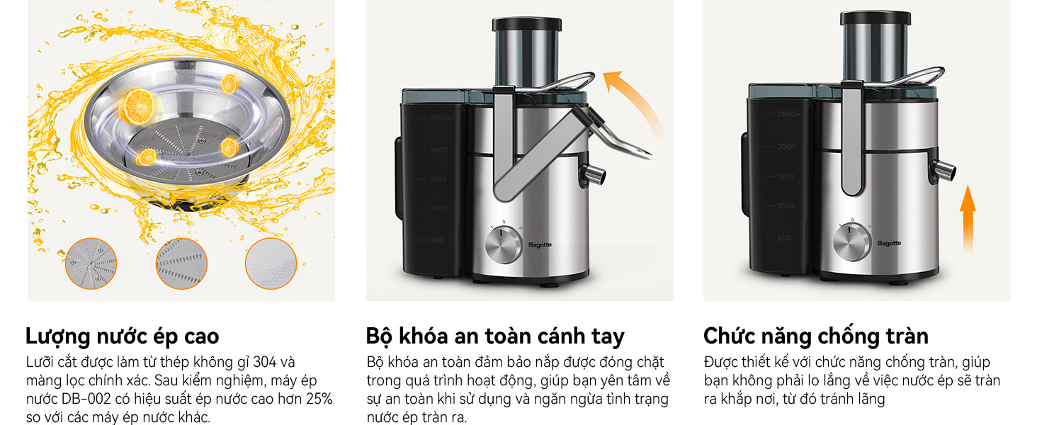 Chế độ: Hai tốc độ ép và chức năng chống nhỏ giọt