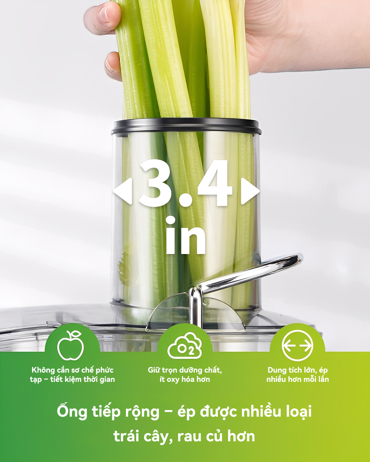 Kích thước ống tiếp nguyên liệu: 8,5 cm