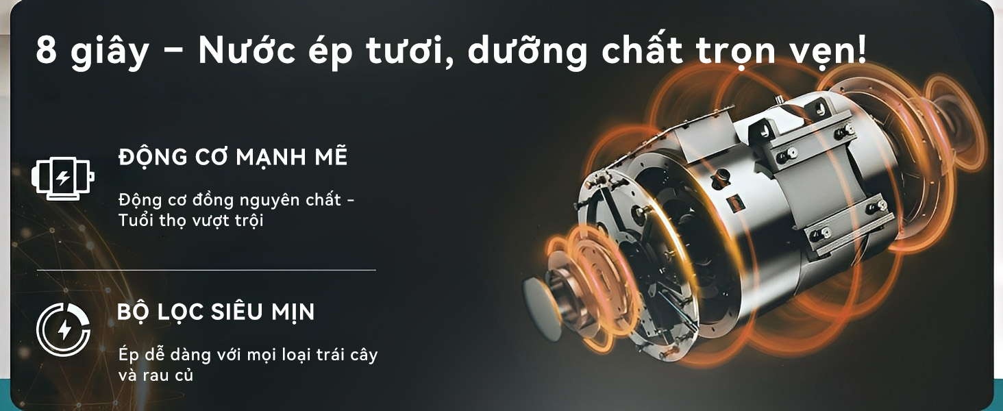 4.Rổ lọc và bình xay thép không gỉ giúp ép tối đa lượng nước