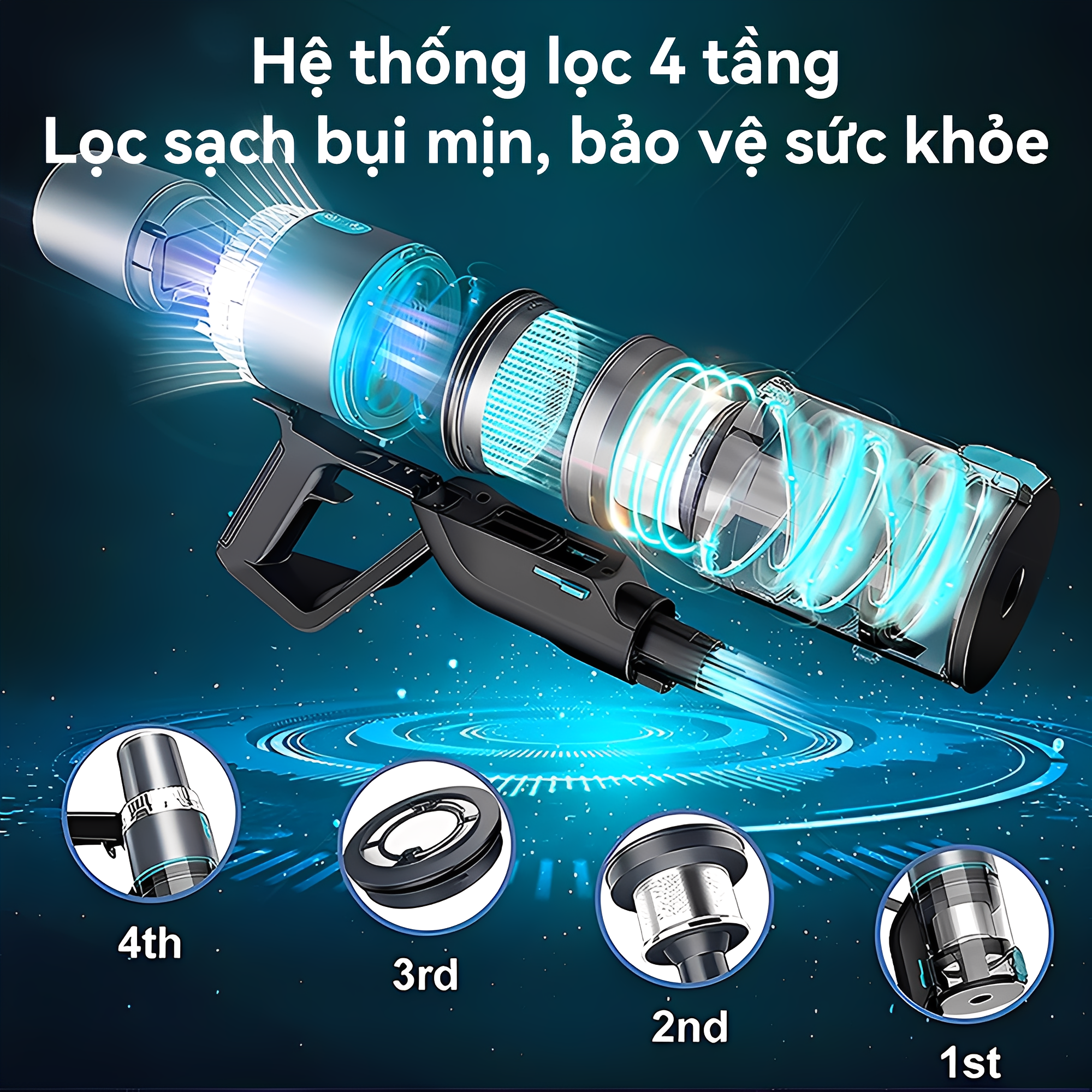 Bộ lọc: HEPA + Lưới thép không gỉ