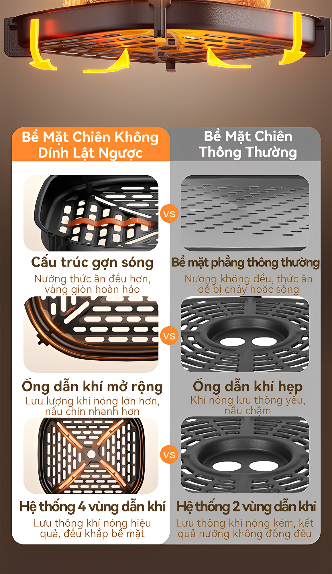 Hệ thống lưu thông không khí nhanh: Chiên nhanh, tiết kiệm năng lượng
